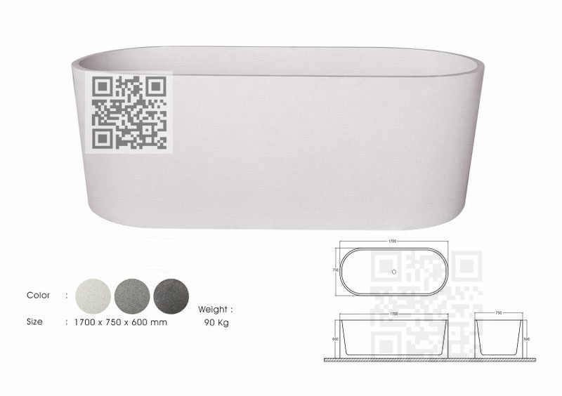The BTZ020 terrazzo bath features a sleek oval shape, offering both visual appeal and ergonomic comfort: